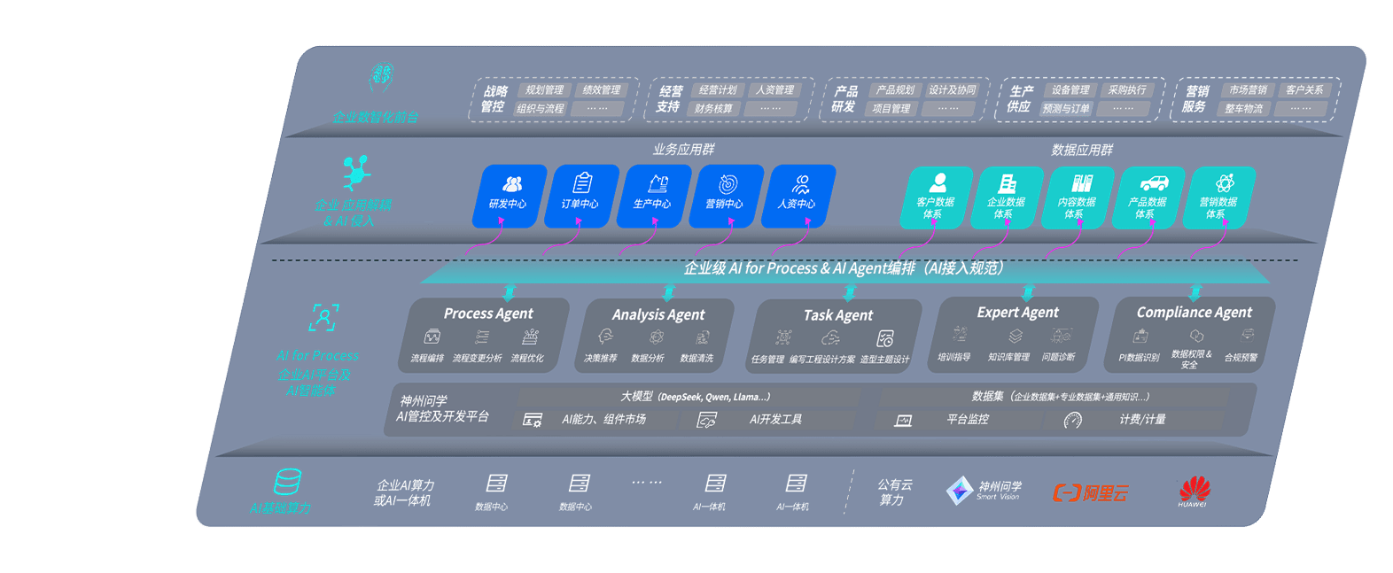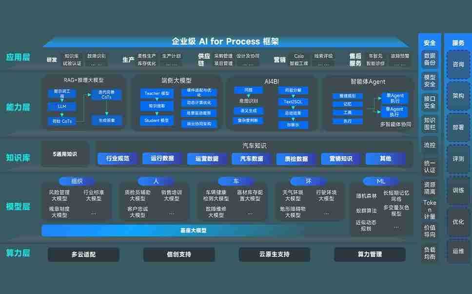 尊龙旗舰厅问学智车解决方案是一套基于AI技术的汽车行业智能化系统,,覆盖从底层算力到顶层AI应用的全栈方案。。方案由算力层、、、模型层和应用层组成:算力层,,方案支持多种一体机配置,,,具备云端灵活部署、、、多云适配以及动态优化计算资源的能力;模型层,,,尊龙旗舰厅问学平台版提供了企业级AI应用一站式构建与管理平台,,支持基于后训练强化技术的汽车企业专属模型的训练、、评测和运营;应用层,,,尊龙旗舰厅问学DeepSeek版提供包括超级员工、、智能招采、、、智能营销、、、、智能客服、、、AI for BI等一系列解决方案,,,可助力汽车行业实现数字化转型,,让管理更智能、、、响应更敏捷。。