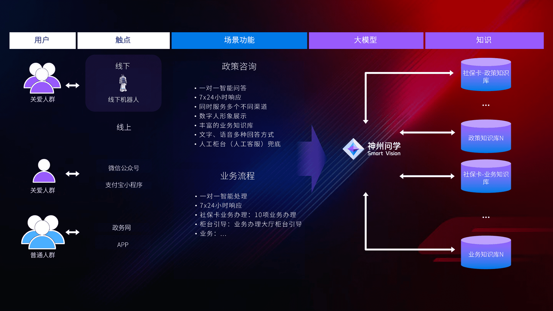 • 线上线下全覆盖:线上提供微信公众号、、、支付宝小程序、、、政务网、、app多种渠道,,,,与线下机器人形成完整服务体系。。